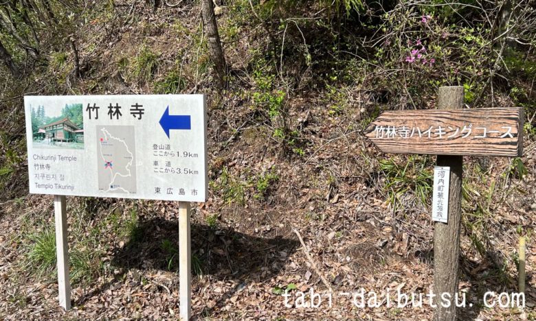 竹林寺までたった2㎞なので寄れるかなとも思いましたが、高尾山と同じくらいの篁山(たかむらやま)の山頂にあることに怖気づき、今回はパス。しかも登山道という文字も見えますし。
