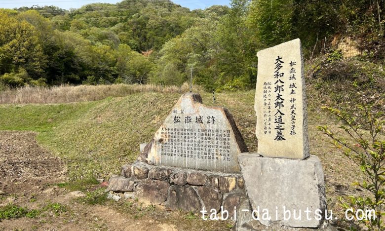 偶然通りかかりましたが、松嶽城跡と城主であった大多和八郎太郎入道之墓の石碑。
