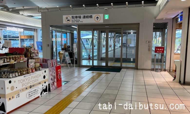 2階出発ロビーの真ん中辺りにある駐車場連絡橋を渡ります。